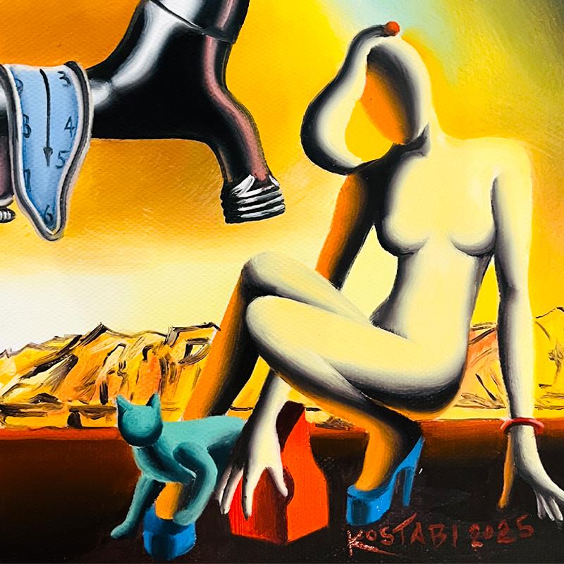 Mark Kostabi, Framed Original Oil Painting on Canvas, Hand Signed with a Certificate of Authenticity.
