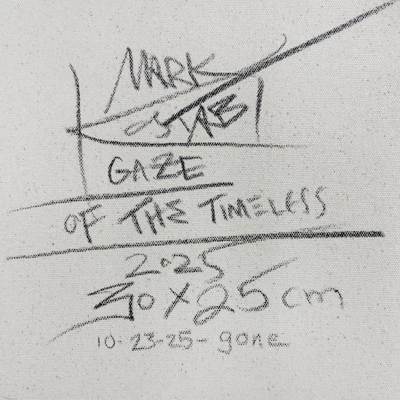 "Gaze of the Timeless" is an original oil painting on canvas by Mark Kostabi, hand signed by the artist. This piece comes custom framed. Includes Certificate of Authenticity. Measures approx. 22" x 20" (frame), 12" x 10" (image). This item requires special handling and may have a longer than usual turnaround.