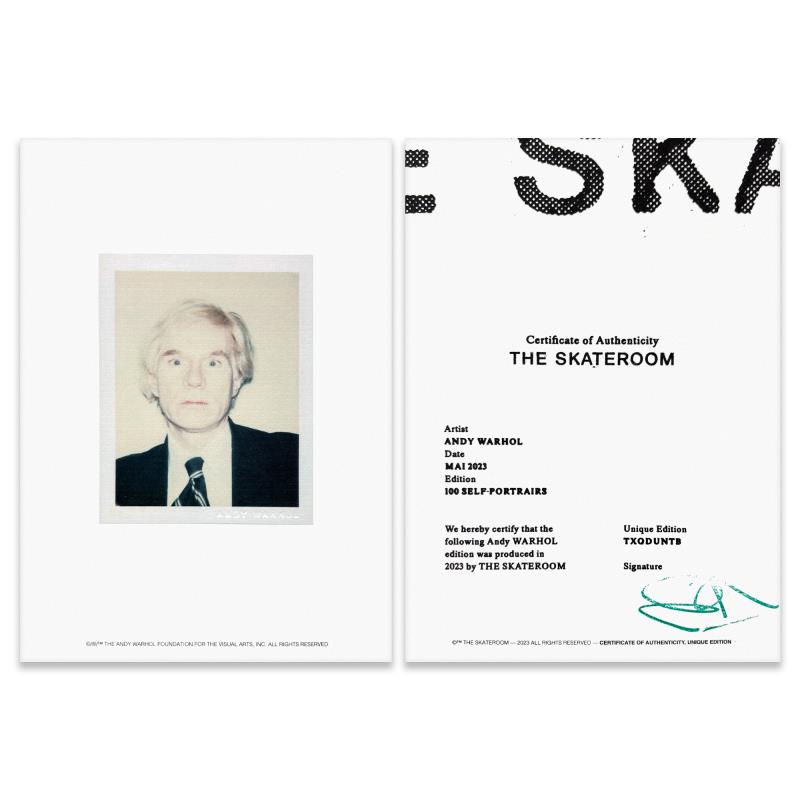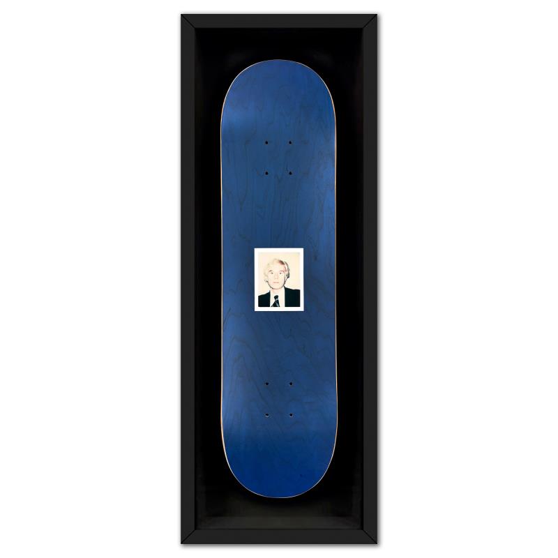 Self-Portrait (Blue) is a one-of-a-kind unique edition skateboard by Andy Warhol (1928-1987), bearing the plate signature inverso of the artist. This piece comes custom framed. This piece is from a unique edition in partnership with The Brant Foundation. Each edition within the collection has its own color hue and unique Andy Warhol polaroid photograph printed on the board inverso. This piece comes custom framed. Includes Certificate of Authenticity. Measures approx. 38" x 14.5" (frame), 32" x 8.5" (skateboard).This item requires special handling and may have longer than usual turnaround.