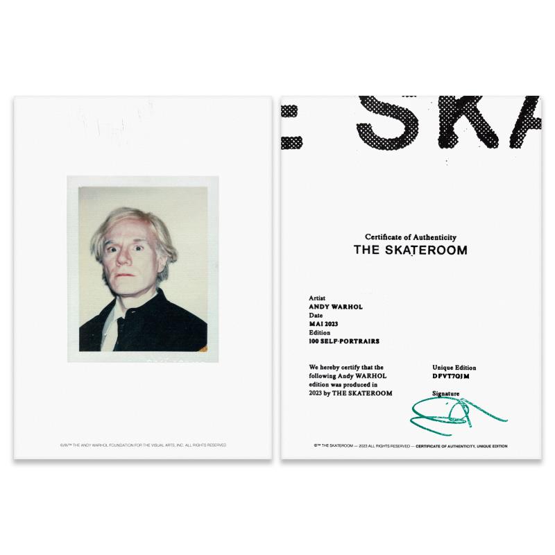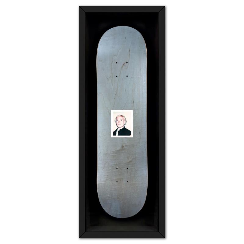 Self-Portrait (Blue) is a one-of-a-kind unique edition skateboard by Andy Warhol (1928-1987), bearing the plate signature inverso of the artist. This piece comes custom framed. This piece is from a unique edition in partnership with The Brant Foundation. Each edition within the collection has its own color hue and unique Andy Warhol polaroid photograph printed on the board inverso. This piece comes custom framed. Includes Certificate of Authenticity. Measures approx. 38" x 14.5" (frame), 32" x 8.5" (skateboard).This item requires special handling and may have longer than usual turnaround.