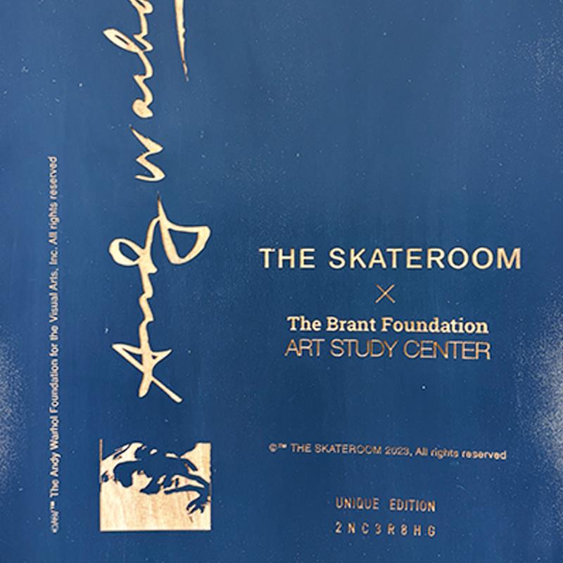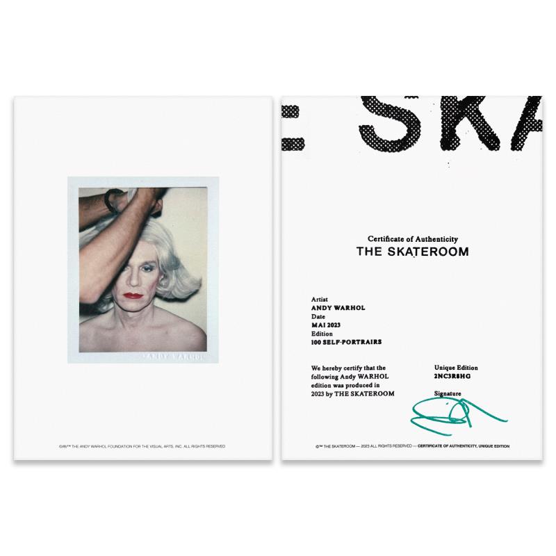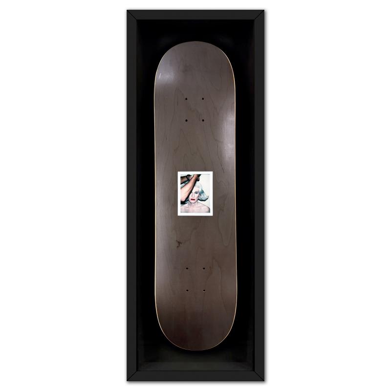 Self-Portrait (Grey) is a one-of-a-kind unique edition skateboard by Andy Warhol (1928-1987), bearing the plate signature inverso of the artist. This piece comes custom framed. This piece is from a unique edition in partnership with The Brant Foundation. Each edition within the collection has its own color hue and unique Andy Warhol polaroid photograph printed on the board inverso. This piece comes custom framed. Includes Certificate of Authenticity. Measures approx. 38" x 14.5" (frame), 32" x 8.5" (skateboard).This item requires special handling and may have longer than usual turnaround.