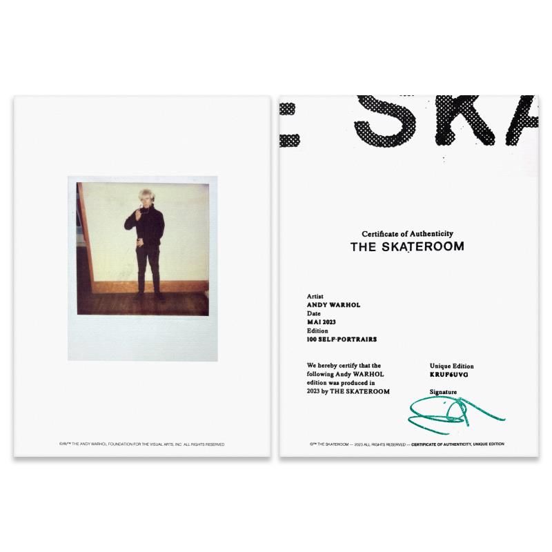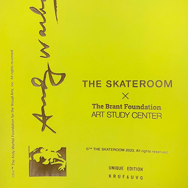 Self-Portrait (Yellow) is a one-of-a-kind unique edition skateboard by Andy Warhol (1928-1987), bearing the plate signature inverso of the artist. This piece comes custom framed. This piece is from a unique edition in partnership with The Brant Foundation. Each edition within the collection has its own color hue and unique Andy Warhol polaroid photograph printed on the board inverso. This piece comes custom framed. Includes Certificate of Authenticity. Measures approx. 38" x 14.5" (frame), 32" x 8.5" (skateboard).This item requires special handling and may have longer than usual turnaround.