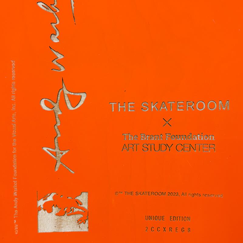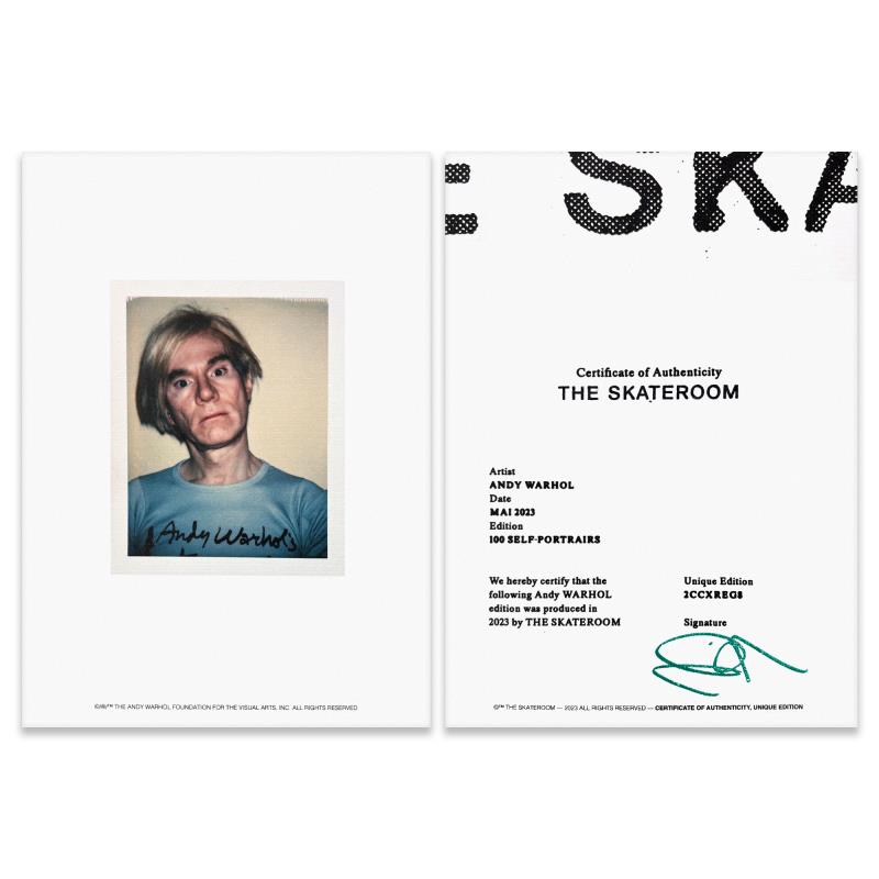 Self-Portrait (Orange) is a one-of-a-kind unique edition skateboard by Andy Warhol (1928-1987), bearing the plate signature inverso of the artist. This piece comes custom framed. This piece is from a unique edition in partnership with The Brant Foundation. Each edition within the collection has its own color hue and unique Andy Warhol polaroid photograph printed on the board inverso. This piece comes custom framed. Includes Certificate of Authenticity. Measures approx. 38" x 14.5" (frame), 32" x 8.5" (skateboard).This item requires special handling and may have longer than usual turnaround.