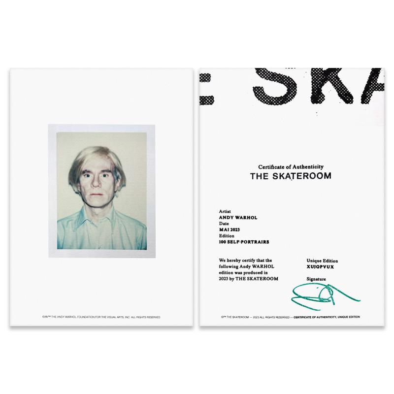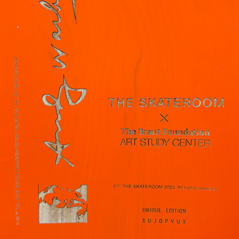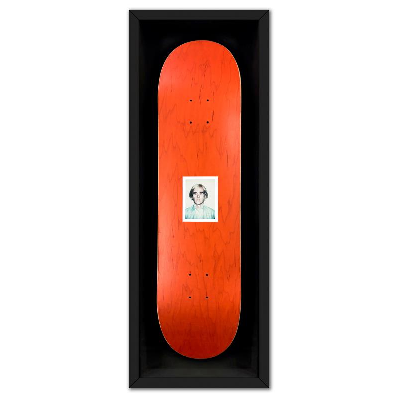 Self-Portrait (Orange) is a one-of-a-kind unique edition skateboard by Andy Warhol (1928-1987), bearing the plate signature inverso of the artist. This piece comes custom framed. This piece is from a unique edition in partnership with The Brant Foundation. Each edition within the collection has its own color hue and unique Andy Warhol polaroid photograph printed on the board inverso. This piece comes custom framed. Includes Certificate of Authenticity. Measures approx. 38" x 14.5" (frame), 32" x 8.5" (skateboard).This item requires special handling and may have longer than usual turnaround.