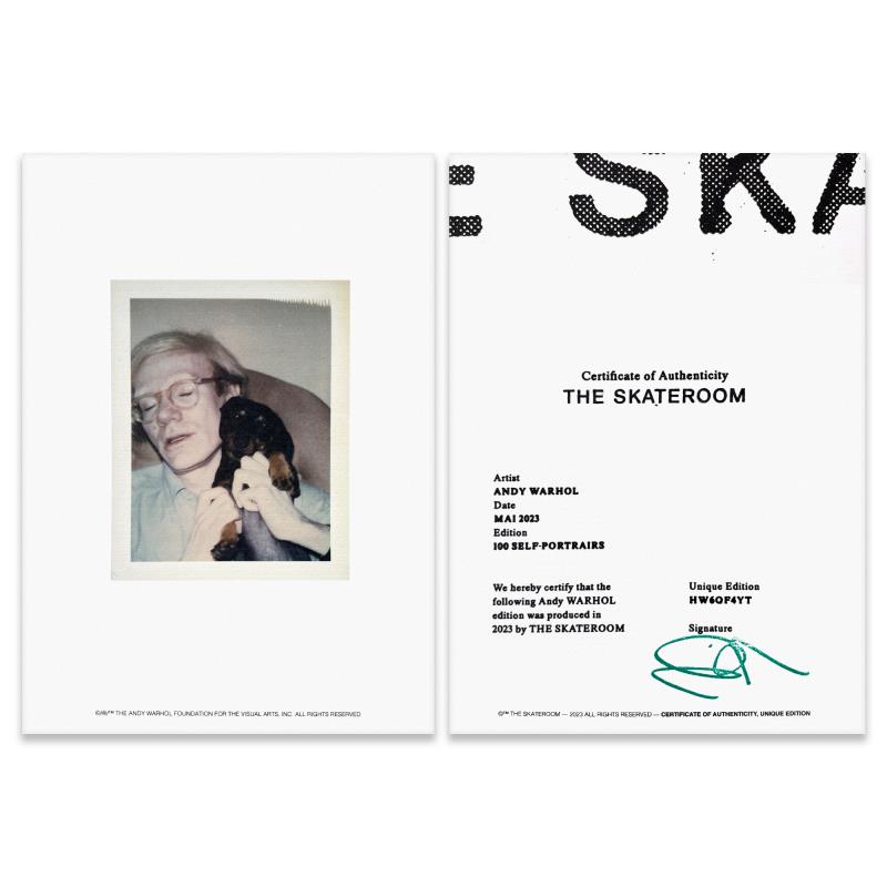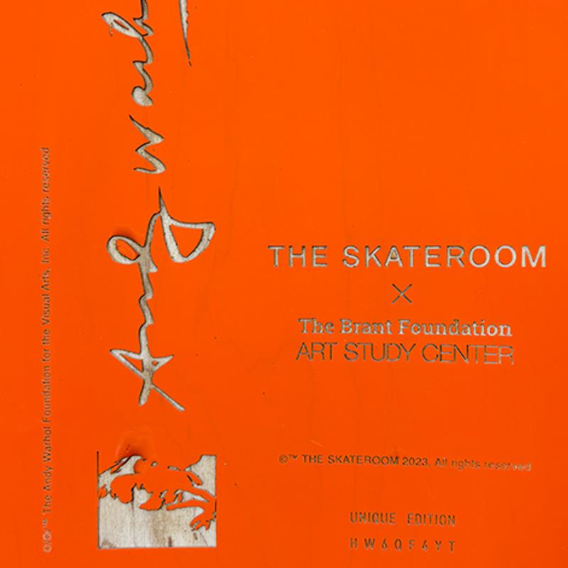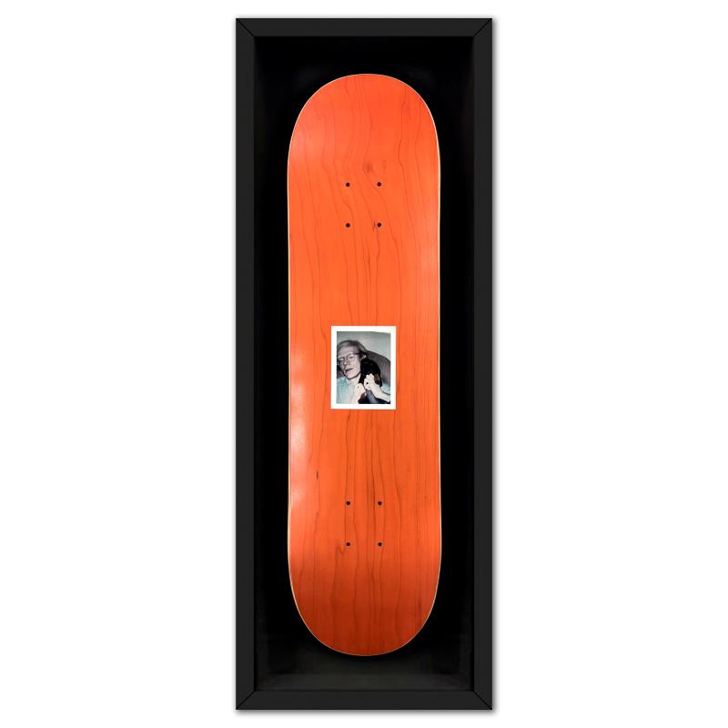 Self-Portrait (Orange) is a one-of-a-kind unique edition skateboard by Andy Warhol (1928-1987), bearing the plate signature inverso of the artist. This piece comes custom framed. This piece is from a unique edition in partnership with The Brant Foundation. Each edition within the collection has its own color hue and unique Andy Warhol polaroid photograph printed on the board inverso. This piece comes custom framed. Includes Certificate of Authenticity. Measures approx. 38" x 14.5" (frame), 32" x 8.5" (skateboard).This item requires special handling and may have longer than usual turnaround.