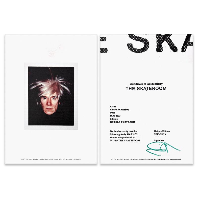 Self-Portrait (Red) is a one-of-a-kind unique edition skateboard by Andy Warhol (1928-1987), bearing the plate signature inverso of the artist. This piece comes custom framed. This piece is from a unique edition in partnership with The Brant Foundation. Each edition within the collection has its own color hue and unique Andy Warhol polaroid photograph printed on the board inverso. This piece comes custom framed. Includes Certificate of Authenticity. Measures approx. 38" x 14.5" (frame), 32" x 8.5" (skateboard).This item requires special handling and may have longer than usual turnaround.