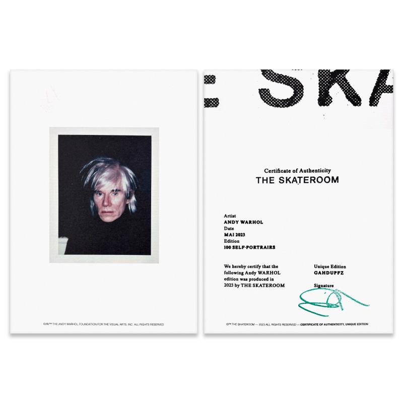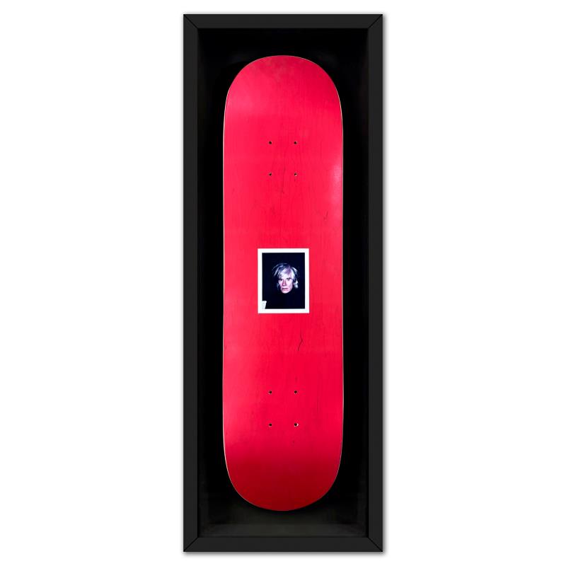 Self-Portrait (Red) is a one-of-a-kind unique edition skateboard by Andy Warhol (1928-1987), bearing the plate signature inverso of the artist. This piece comes custom framed. This piece is from a unique edition in partnership with The Brant Foundation. Each edition within the collection has its own color hue and unique Andy Warhol polaroid photograph printed on the board inverso. This piece comes custom framed. Includes Certificate of Authenticity. Measures approx. 38" x 14.5" (frame), 32" x 8.5" (skateboard).This item requires special handling and may have longer than usual turnaround.