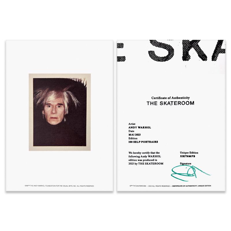 Self-Portrait (Red) is a one-of-a-kind unique edition skateboard by Andy Warhol (1928-1987), bearing the plate signature inverso of the artist. This piece comes custom framed. This piece is from a unique edition in partnership with The Brant Foundation. Each edition within the collection has its own color hue and unique Andy Warhol polaroid photograph printed on the board inverso. This piece comes custom framed. Includes Certificate of Authenticity. Measures approx. 38" x 14.5" (frame), 32" x 8.5" (skateboard).This item requires special handling and may have longer than usual turnaround.