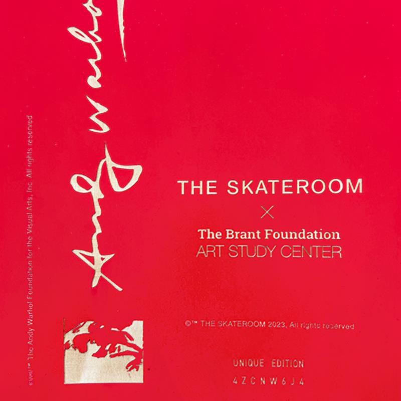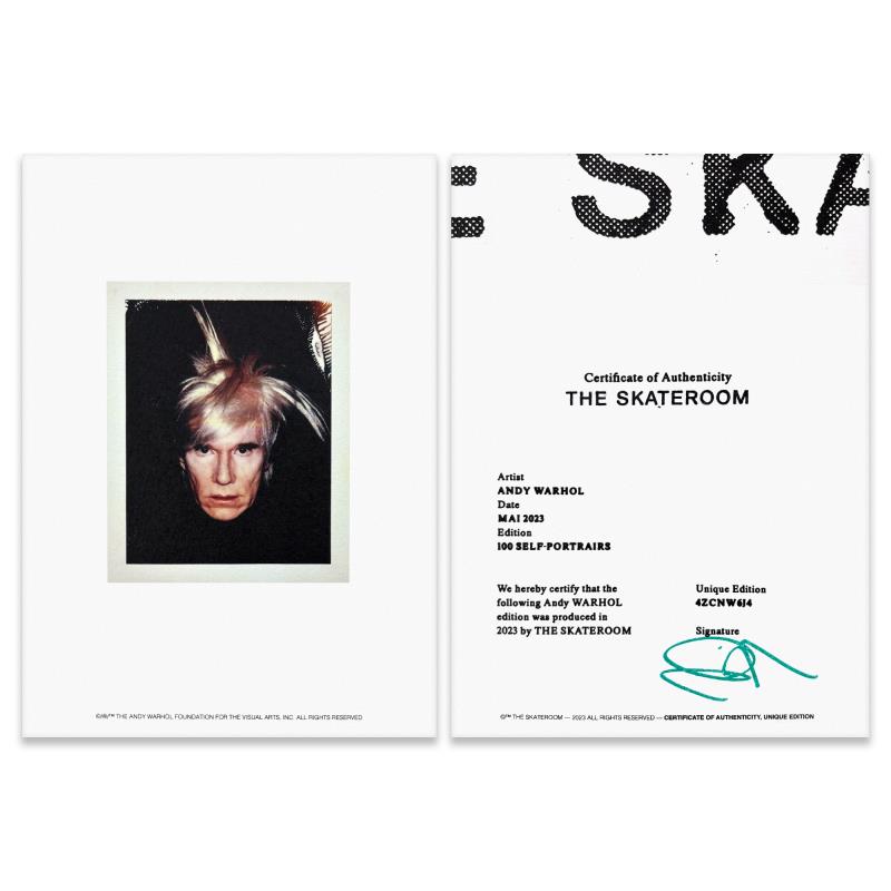 Self-Portrait (Red) is a one-of-a-kind unique edition skateboard by Andy Warhol (1928-1987), bearing the plate signature inverso of the artist. This piece comes custom framed. This piece is from a unique edition in partnership with The Brant Foundation. Each edition within the collection has its own color hue and unique Andy Warhol polaroid photograph printed on the board inverso. This piece comes custom framed. Includes Letter of Authenticity. Measures approx. 38" x 14.5" (frame), 32" x 8.5" (skateboard).This item requires special handling and may have longer than usual turnaround.