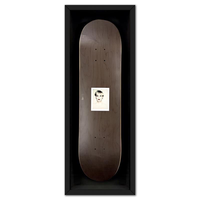 Self-Portrait (Grey) is a one-of-a-kind unique edition skateboard by Andy Warhol (1928-1987), bearing the plate signature inverso of the artist. This piece comes custom framed. This piece is from a unique edition in partnership with The Brant Foundation. Each edition within the collection has its own color hue and unique Andy Warhol polaroid photograph printed on the board inverso. This piece comes custom framed. Includes Letter of Authenticity. Measures approx. 38" x 14.5" (frame), 32" x 8.5" (skateboard).This item requires special handling and may have longer than usual turnaround.
