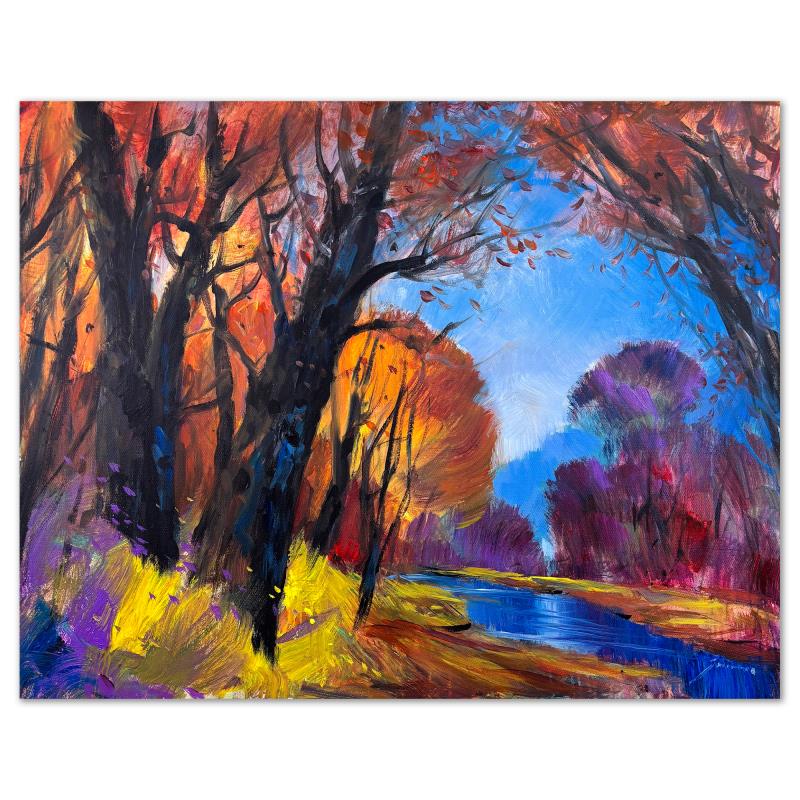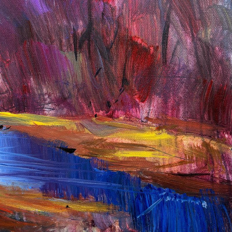 Canvas works are typically framed without plexi so that the vibrancy and interaction with light can be best appreciated.
