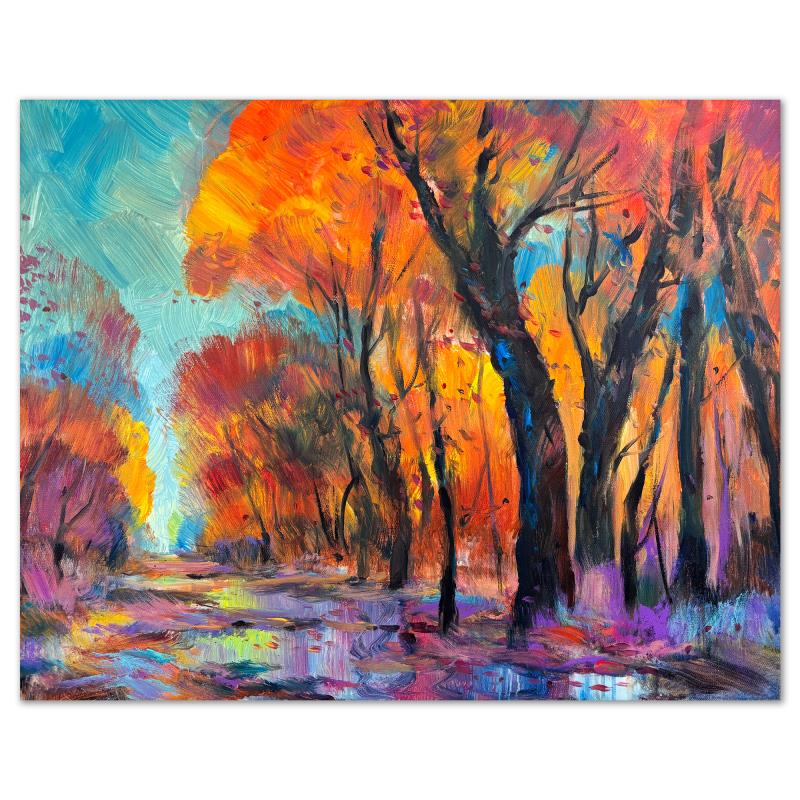 Canvas works are typically framed without plexi so that the vibrancy and interaction with light can be best appreciated.
