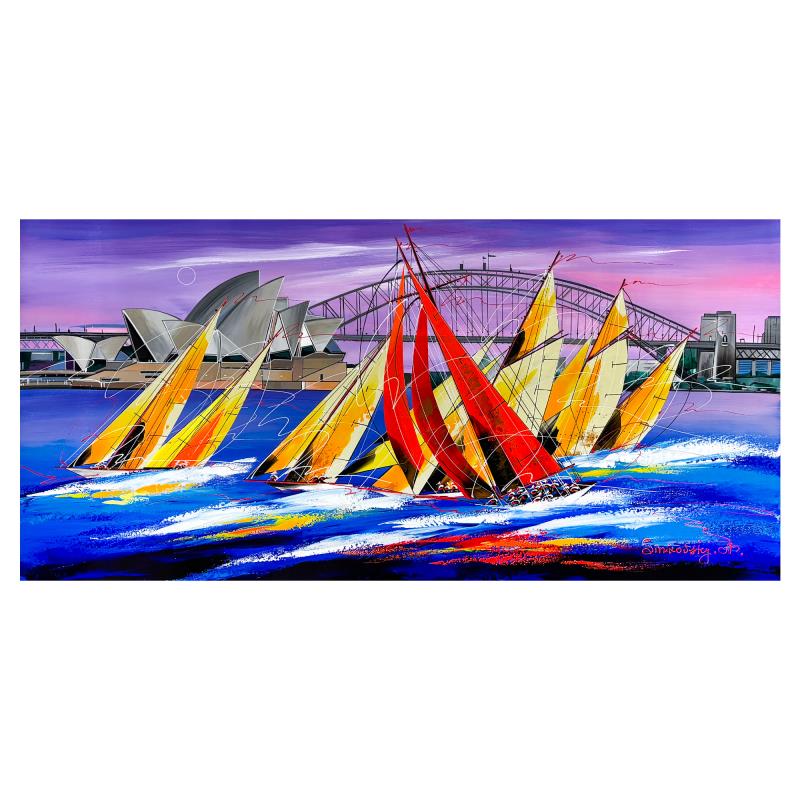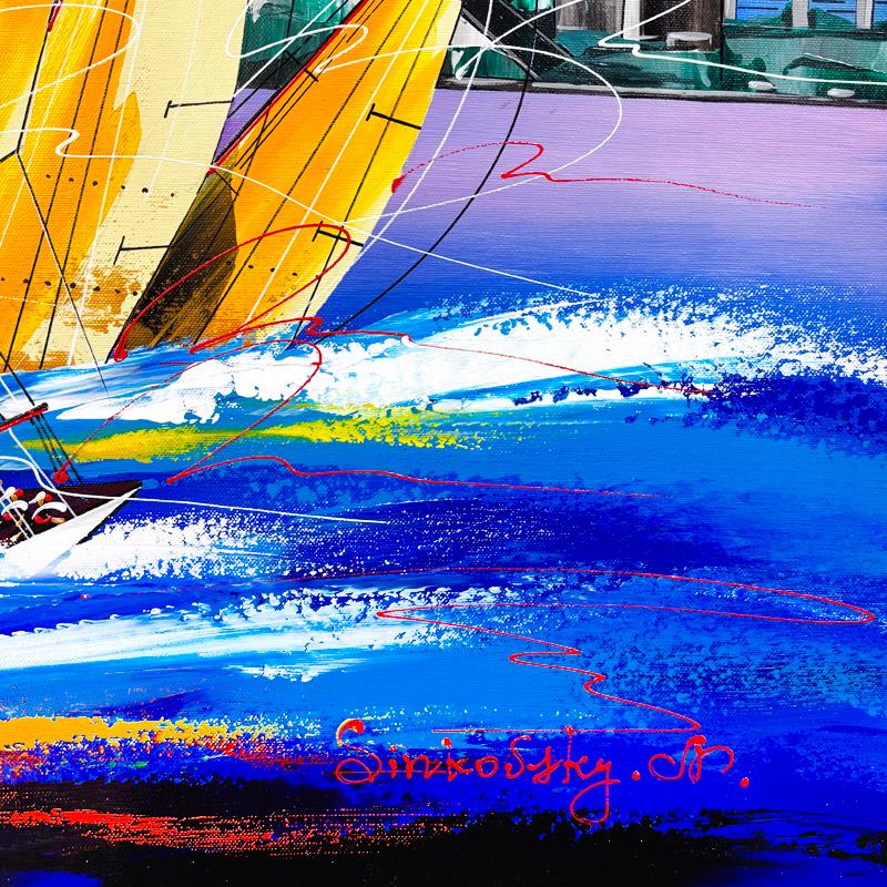 Born in 1959, in Kazakhstan, Natalia Sinkovsky finished her Master’s in Architecture in her homeland, where she also took drawing and painting courses. Sinkovsky immigrated to Israel with her family in 1995 and initially worked as an interior designer and architect, before expanding into painting professionally in 2002. Primarily painting in acrylic, Sinkovsky initiates her artistic process with an idea, rather than a predefined sketch, and applies layers of paint in thick application using a palette knife, before adding small graphic elements. She appreciates all art styles and movements, but is primarily inspired by abstract art and modern design, due in part to her background in architecture. Her sailboats series are influenced by her appreciation for the Expressionist, Baroque, and Cubist movements. In her artwork, Sinkovsky employs bright, cheerful colors to complement her optimistic outlook on life.