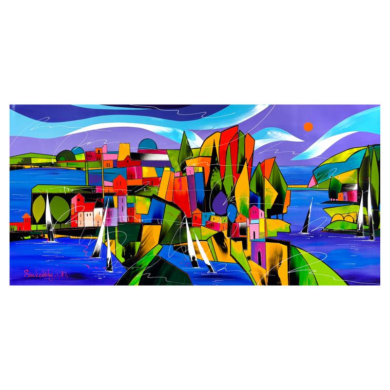 This is an original acrylic painting on canvas by Natalia Sinkovsky, hand signed by the artist. Includes Letter of Authenticity. Measures approx. 24" x 48" (image).