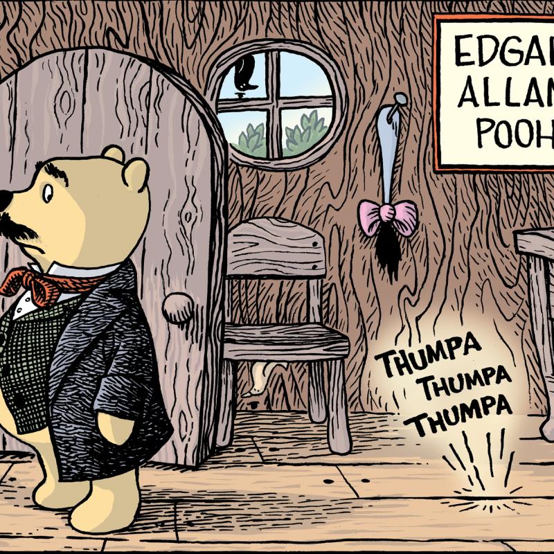 "Edgar Allan Pooh" is a limited edition giclee on paper by Dan Piraro, creator of the critically acclaimed and award winning comic strip, Bizarro, numbered and hand signed by the artist. Includes Letter of Authenticity. Measures approx. 19" x 19" (border), 8" x 15" (image).