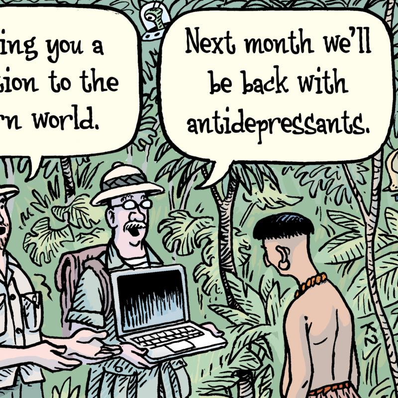 Dan Piraro has been a cigar-smoking vegan, animal rights activist, atheist, NRA hating, ex-husband, father, stand-up comedian, painter, former host of FOX TV’s "Utopia," philosophizing cartoonist who makes his living writing and drawing a new cartoon every day, 365 days a year. His humor is inspired partly by his own real-life situations and partly by the eccentric thoughts that pop into his overly-active mind. Dan has a rare talent for ruffling feathers with scathing commentary on the mindlessness of modern life, then smoothing them down with his disarming humor, charm and self-deprecating humility. His intriguing perspective on life easily flows beyond the boundaries of one-panel cartoons and into a comedic and interesting conversation about a plethora of topics. He stirs up controversy, inspires revelations, and pokes fun at everyone along the way, including himself.