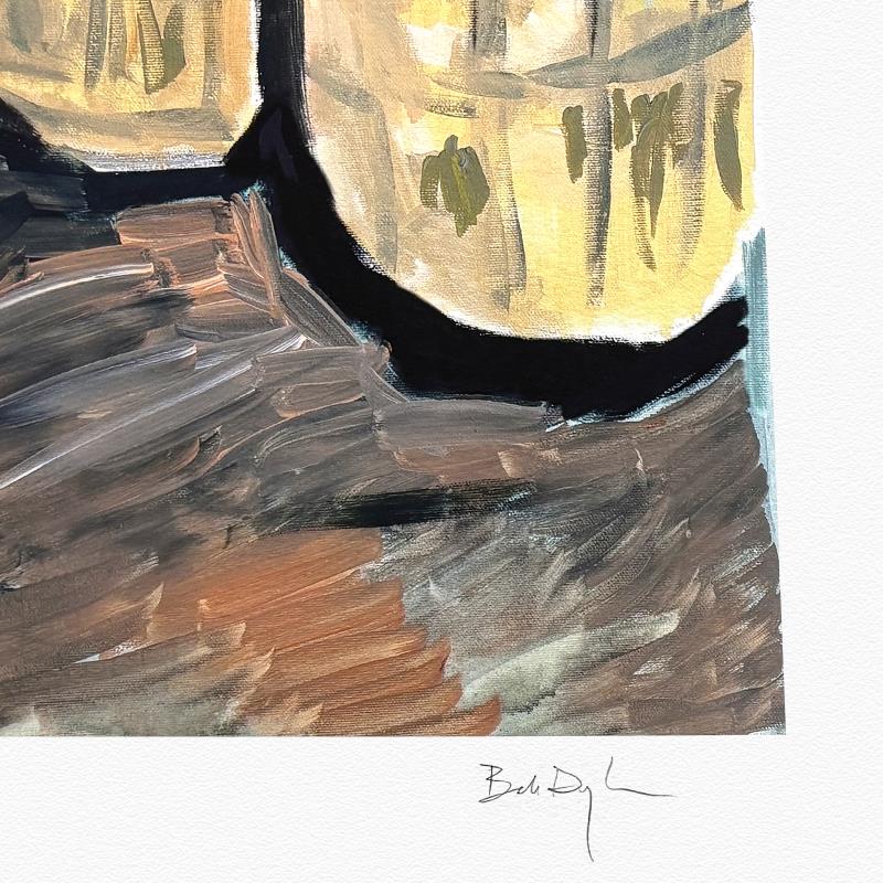 "Ranchers" is a limited edition giclee on paper by Bob Dylan, TP numbered 1/2 and hand signed by the artist. This piece comes custom framed. Includes Letter of Authenticity. Measures approx. 36.5" x 28.5" (frame), 23.5" x 15.5" (image).