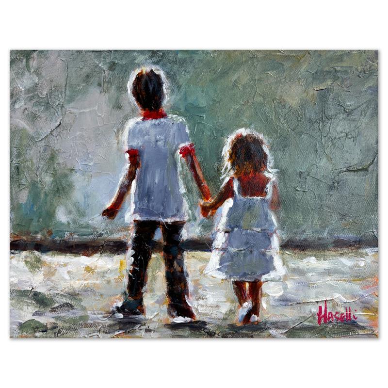 Michael Maselli, "Brother and Sister" Original Painting on Canvas, Hand Signed with Letter of Authenticity.
