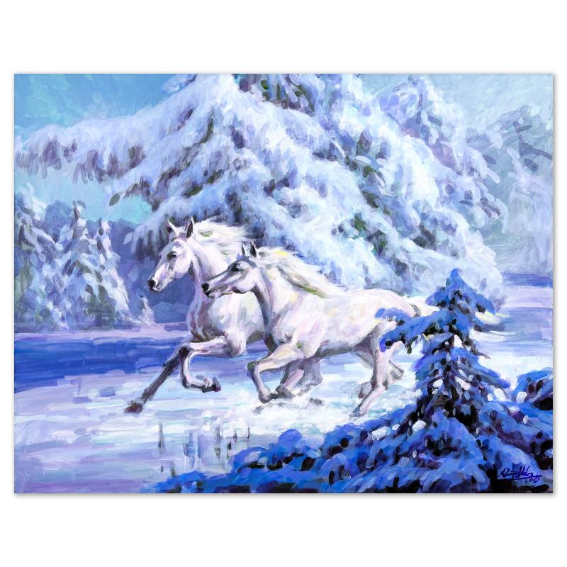 "White on White" is an original acrylic painting on stretched canvas by Richard Ho, hand signed by the artist. Includes Letter of Authenticity. Measures approx. 24" x 30" (image).