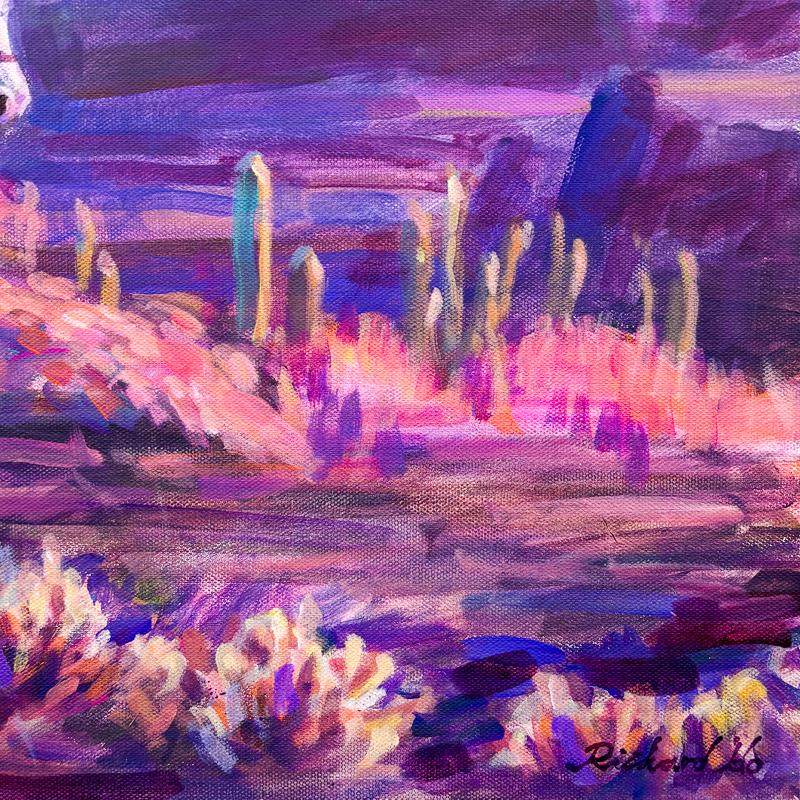 "Across the Painted Desert" is an original acrylic painting on stretched canvas by Richard Ho, hand signed by the artist. Includes Letter of Authenticity. Measures approx. 24" x 30" (image).