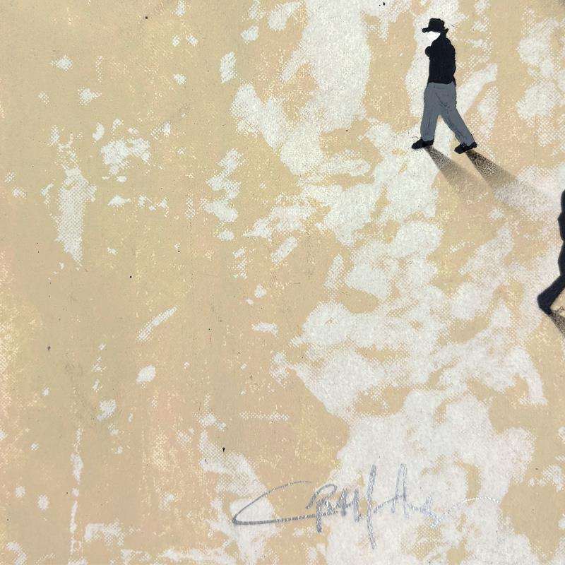 One of Alan’s notable series, "Populus," features intricate paintings of tiny people forming iconic images. This work showcases characters from diverse walks of life, demonstrating a broad spectrum of character and body types through brilliant use of posture and movement. The figures in Alan’s "Populus" series are meticulously arranged to create larger, recognizable images, highlighting his inventive approach and the thematic exploration of individual versus collective identity.