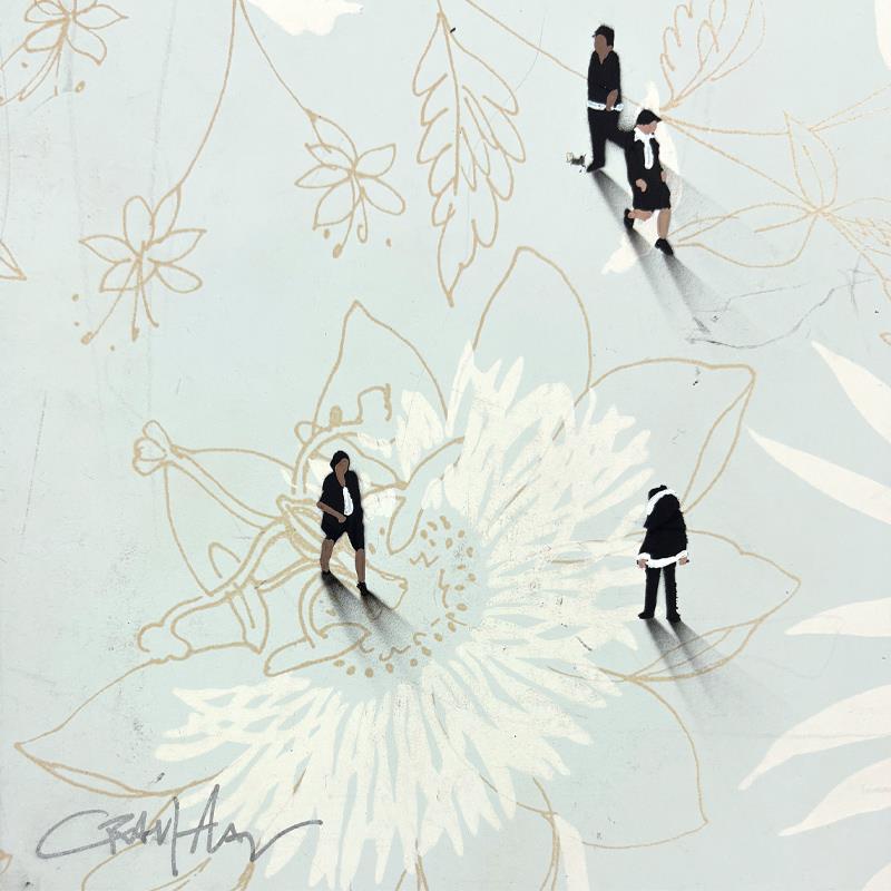 One of Alan’s notable series, "Populus," features intricate paintings of tiny people forming iconic images. This work showcases characters from diverse walks of life, demonstrating a broad spectrum of character and body types through brilliant use of posture and movement. The figures in Alan’s "Populus" series are meticulously arranged to create larger, recognizable images, highlighting his inventive approach and the thematic exploration of individual versus collective identity.
