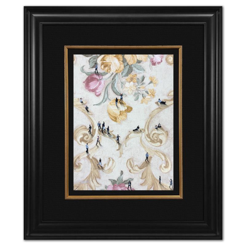 "Fragments (Populous)" is an original mixed media on vintage wallpaper by Craig Alan, hand signed by the artist. This piece comes custom framed. Includes Letter of Authenticity. Measures approx. 26" x 22" (frame), 16" x 12" (image).This item requires special handling and may have longer than usual turnaround.There may be minor perceived flaws but the art is in good condition and was received as is directly from the artist.