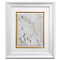 Canvas works are typically framed without plexi so that the vibrancy and interaction with light can be best appreciated.