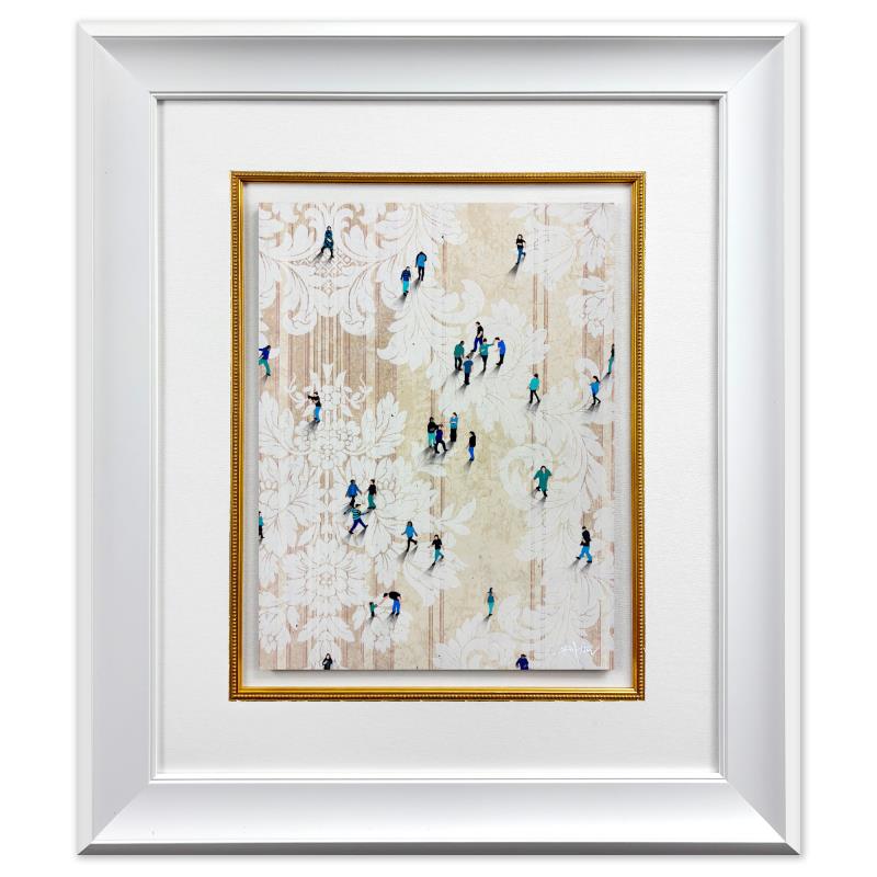 "Fragments (Populous)" is an original mixed media on vintage wallpaper by Craig Alan, hand signed by the artist. This piece comes custom framed. Includes Letter of Authenticity. Measures approx. 27" x 23" (frame), 16" x 12" (image).This item requires special handling and may have longer than usual turnaround.There may be minor perceived flaws but the art is in good condition and was received as is directly from the artist.