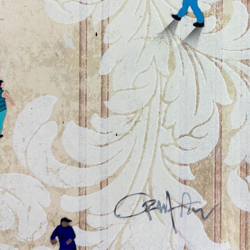 One of Alan’s notable series, "Populus," features intricate paintings of tiny people forming iconic images. This work showcases characters from diverse walks of life, demonstrating a broad spectrum of character and body types through brilliant use of posture and movement. The figures in Alan’s "Populus" series are meticulously arranged to create larger, recognizable images, highlighting his inventive approach and the thematic exploration of individual versus collective identity.