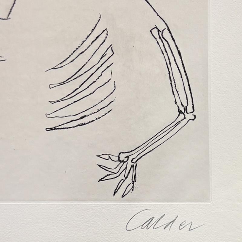 This is a etching on deckle edge paper by Alexander Calder (1898-1976), hand signed by the artist. This art comes from a limited edition portfolio of etchings featuring Calder illustrations created for the E.E. Cummings book, “Santa Claus”. The etchings were published in Paris in 1974. This piece comes custom framed. Includes Letter of Authenticity. Measures approx. 38.5" x 32.5" (frame), 18.5" x 13.5" (image).