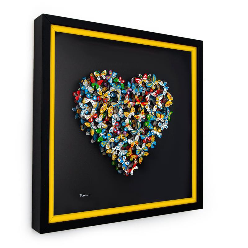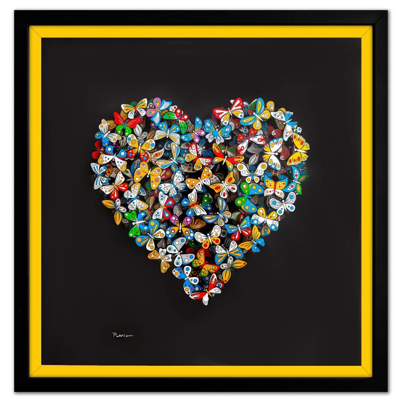 "Love in Paradise" is a limited edition 3D multilayered woodcut by Patricia Govezensky. Hand signed and numbered out of an edition of only 25 pieces. This pece comes framed and with a letter of authenticity. Measures approximately 20" x 20" (framed), 12" x 12" (piece).