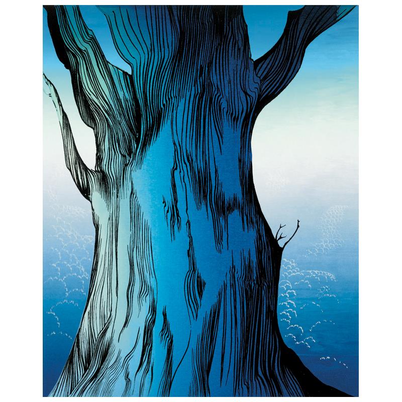 "Eucalyptus" is a limited edition serigraph on paper by Eyvind Earle (1916-2000). The piece is numbered, hand-signed by the artist, and accompanied by a certificate of authenticity. Measures approximately 10" x 8" (image).
