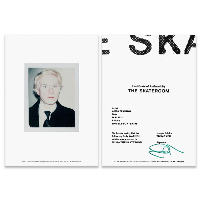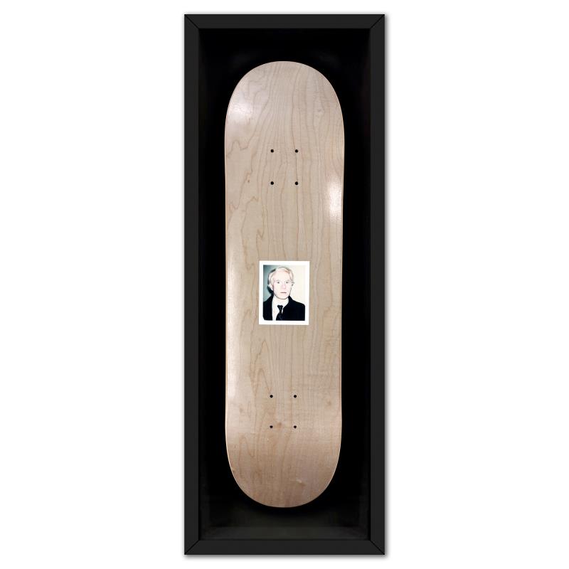 Self-Portrait (Blue) is a one-of-a-kind unique edition skateboard by Andy Warhol (1928-1987), bearing the plate signature inverso of the artist. This piece comes custom framed. This piece is from a unique edition in partnership with The Brant Foundation. Each edition within the collection has its own color hue and unique Andy Warhol polaroid photograph printed on the board inverso. This piece comes custom framed. Includes Certificate of Authenticity. Measures approx. 38" x 14.5" (frame), 32" x 8.5" (skateboard).This item requires special handling and may have longer than usual turnaround.