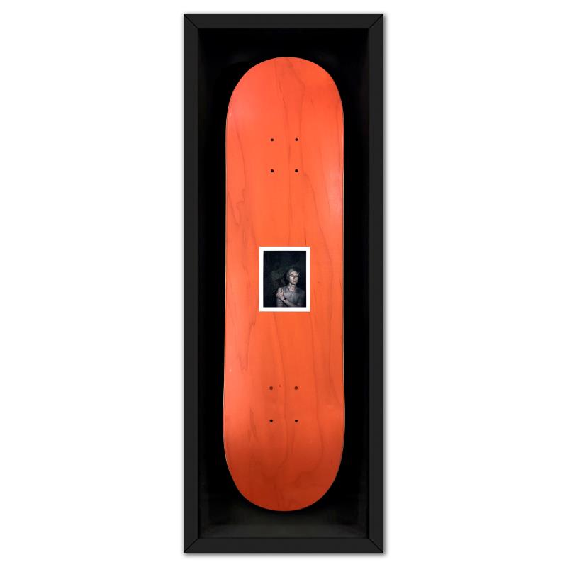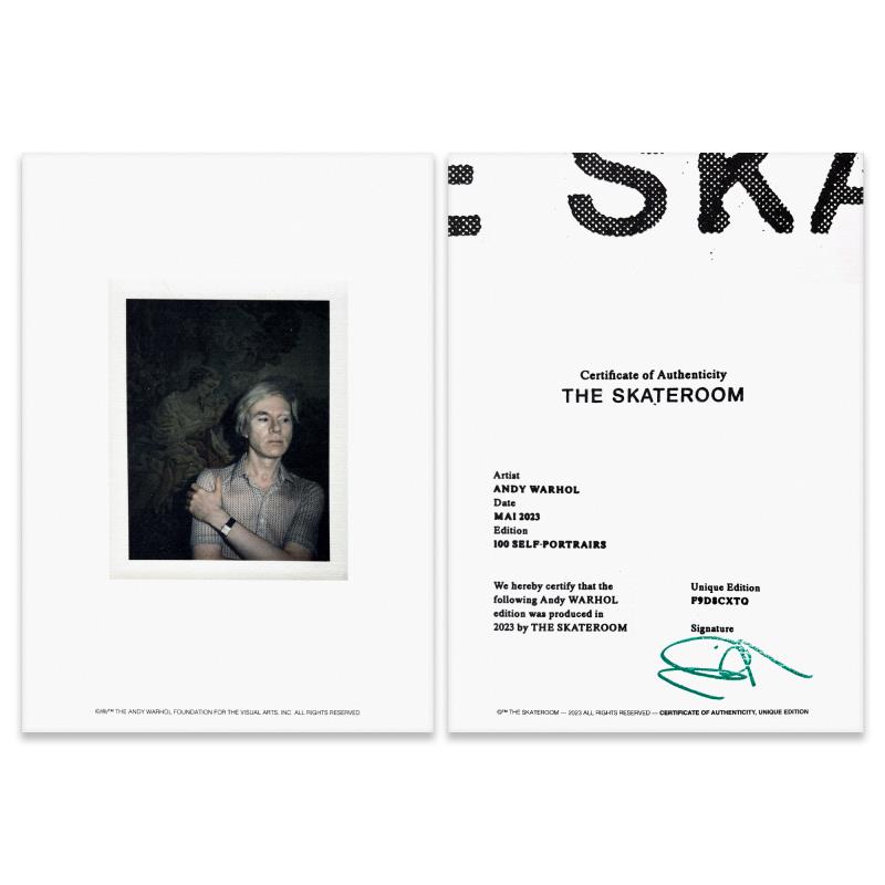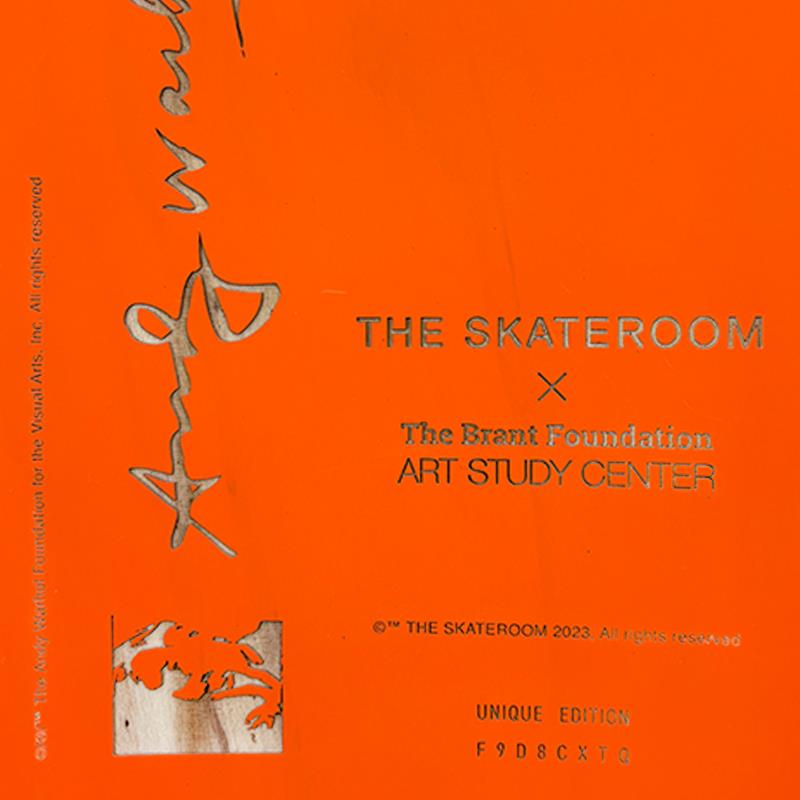 Self-Portrait (Orange) is a one-of-a-kind unique edition skateboard by Andy Warhol (1928-1987), bearing the plate signature inverso of the artist. This piece comes custom framed. This piece is from a unique edition in partnership with The Brant Foundation. Each edition within the collection has its own color hue and unique Andy Warhol polaroid photograph printed on the board inverso. This piece comes custom framed. Includes Certificate of Authenticity. Measures approx. 38" x 14.5" (frame), 32" x 8.5" (skateboard).This item requires special handling and may have longer than usual turnaround.