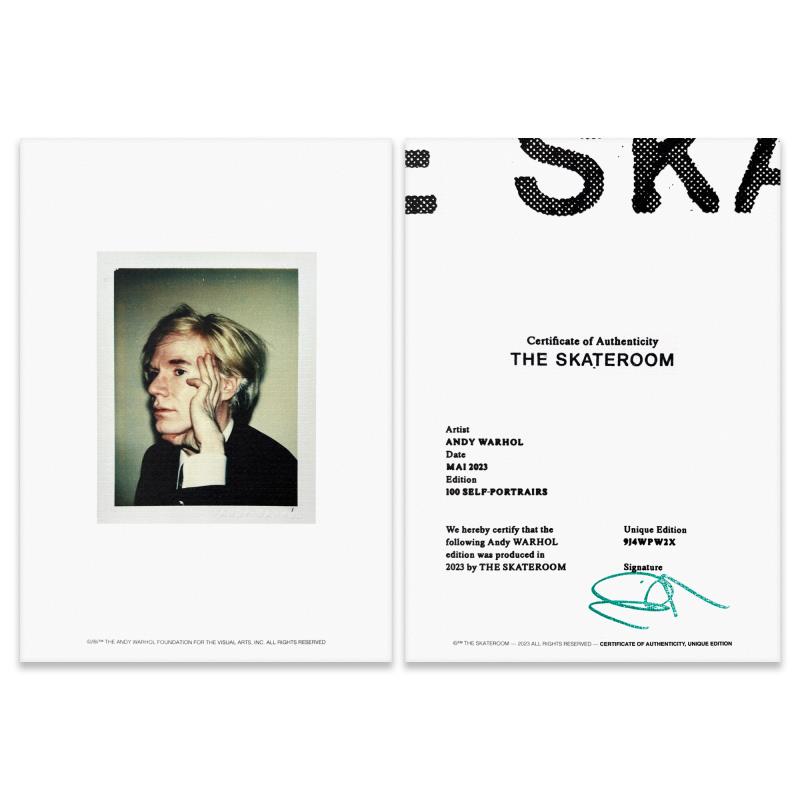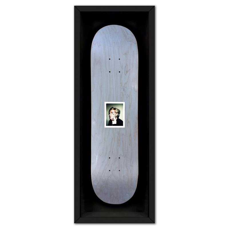Self-Portrait (Blue) is a one-of-a-kind unique edition skateboard by Andy Warhol (1928-1987), bearing the plate signature inverso of the artist. This piece comes custom framed. This piece is from a unique edition in partnership with The Brant Foundation. Each edition within the collection has its own color hue and unique Andy Warhol polaroid photograph printed on the board inverso. This piece comes custom framed. Includes Certificate of Authenticity. Measures approx. 38" x 14.5" (frame), 32" x 8.5" (skateboard).This item requires special handling and may have longer than usual turnaround.