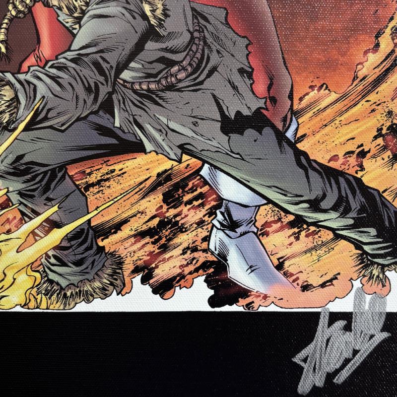 "Avengers #12" is a limited edition giclee on canvas with art by Matthew Clark . Officially licensed by Marvel, this piece is numbered 2/10 and hand signed by creative legend Stan Lee (1922-2018). Refer to second image for the signature as it appears on this piece. The piece comes with a certificate of authenticity. Measures approximately 18" x 24".