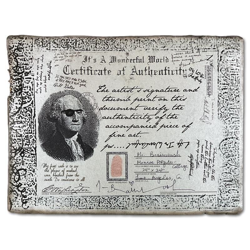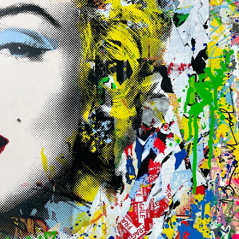 "Monroe POP-folio" is a mixed media original on deckle edge paper by Mr. Brainwash, hand signed and bearing the thumbprint of the artist inverso. This piece comes custom framed. Includes Certificate of Authenticity. Measures approx. 28" x 28" (frame), 24" x 24" (image). This item requires special handling and may have a longer than usual turnaround.