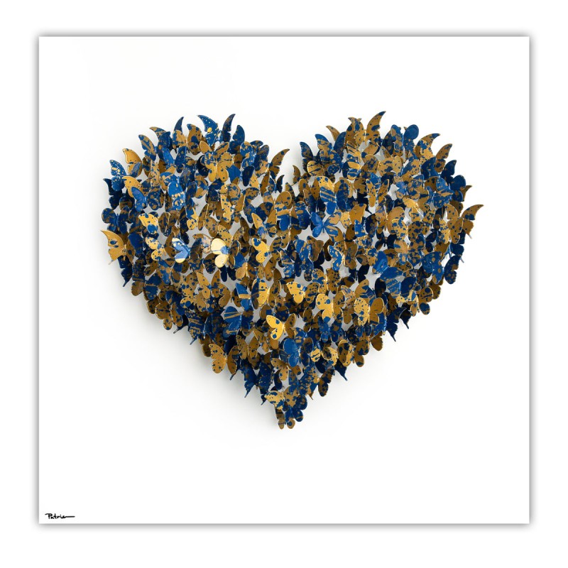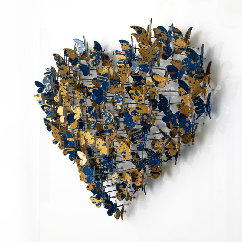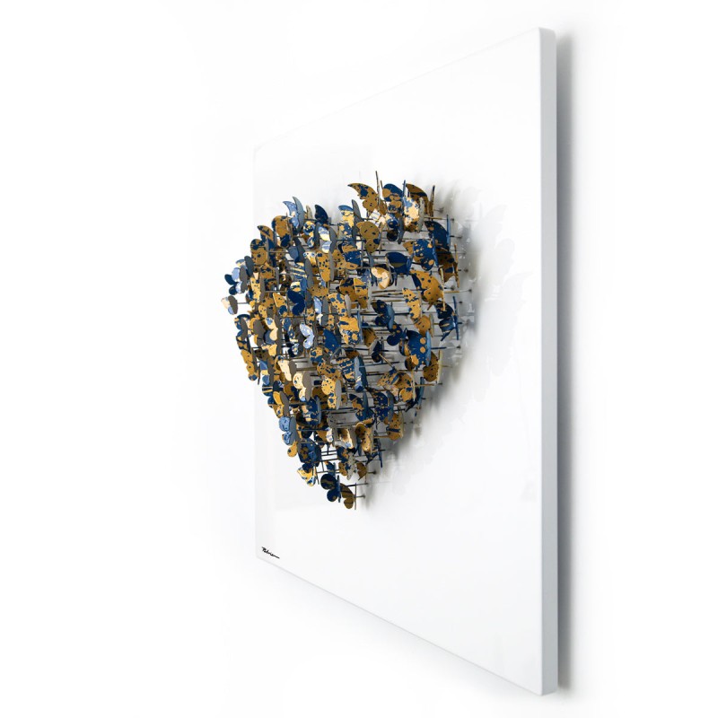 "Heart" is an original mixed media dimensional art, metal on wood. The piece is hand signed and comes with a letter of authenticity. As each piece is original, the piece received may vary slightly form the image. Measures approximately 20" x 20". This item requires special handling and may have a longer than usual turnaround.