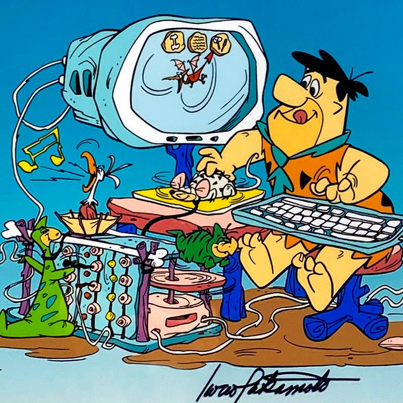 "Microstone" is a limited edition sericel, hand signed by acclaimed Hanna-Barbera artist and designer Iwao Takamoto (1925-2007). This piece is hand signed by from a deluxe edition size of 250 but is not individually numbered. This piece is licensed by Hanna-Barbara and come with Letter of Authenticity. Measures approx. 18" x 22.5" (frame), 10" x 14" (image). ** Please note: there is wear on the protective acrylic cover and frame. **