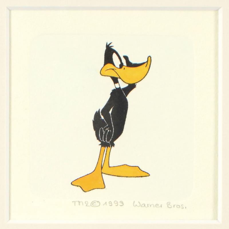 "Daffy Duck (Looking to the Side)" is a limited edition etching on paper with hand-tinted coloring from Warner Bros, numbered and dated 1999. This piece comes framed. Measures approx. 9" x 9" (with frame), 2.5" x 2.5" (image).