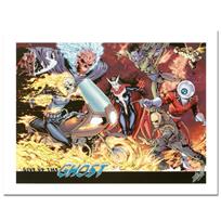 A piece of comic book history, this limited edition print, drawn by J. Scott Campbell, depicts famous characters from the classic Spider-Man series. Though he became famous for drawing for Wildstorm Comics, J. Scott Campbell now works on a Spider-Man series with Jeff Loeb. "Vengeance of the Moon Knight #9" is a limited edition giclee on canvas by J. Scott Campbell presented by Marvel Comics, numbered and hand signed by the artist. Includes Certificate of Authenticity. Measures approx. 15" x 22" (image).