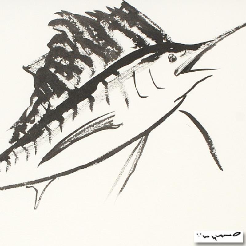 With expert minimalism, Wyland's elegant marine-inspired paintings capture the beauty of nature. "Marlin" is an original sumi ink painting on deckle-edge paper, hand signed by Wyland. This piece comes custom framed using acid free materials and is ready to hang. Includes Certificate of Authenticity! Measures approx. 22" x 18" (with frame), 15" x 11.5" (image).