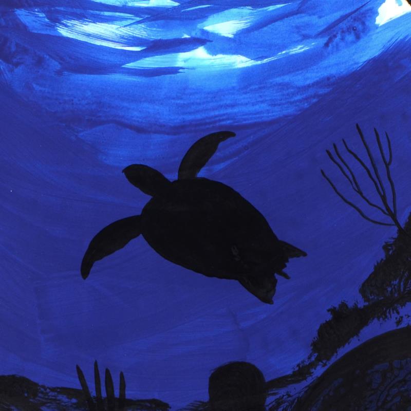 "Turtle" is an original watercolor painting on round cut deckle edge paper by Wyland, hand signed by the artist. This piece is custom framed. Includes Certificate of Authenticity. Measures approx. 29.5" x 29.5" (frame), 19" (image diameter).