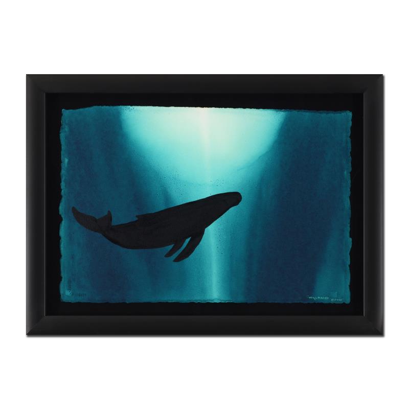 "Whale" is an original watercolor painting on deckle-edge paper by Wyland, hand signed by the artist. This piece is custom framed. Includes Certificate of Authenticity. Measures approx. 28" x 20.5" (with frame); 22" x 16" (image).