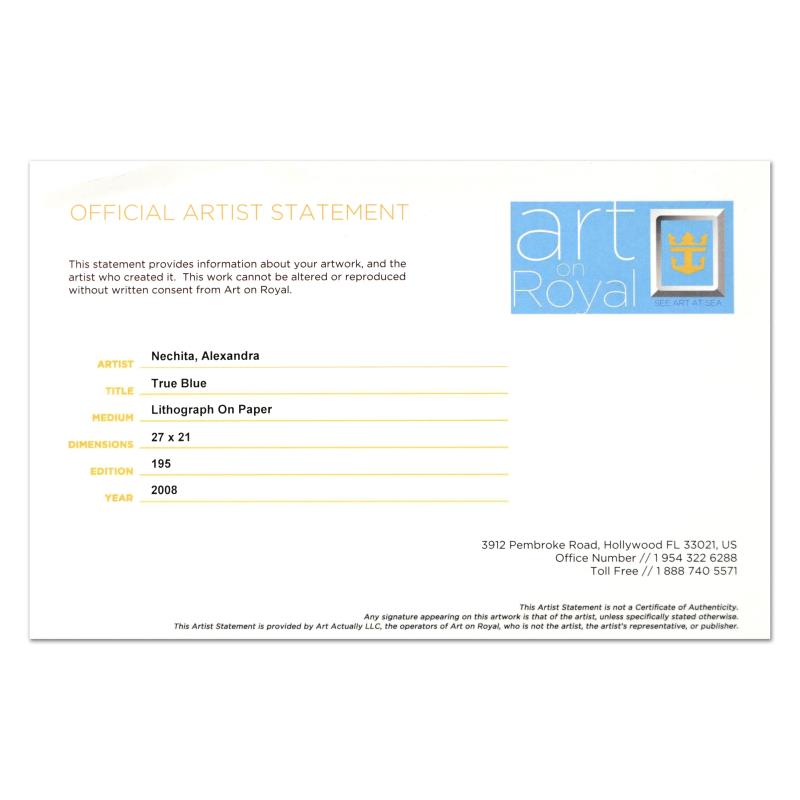 The incredible artwork that has resulted from this skill and nonchalance tend to attract the attention of anyone who sees them. While obviously influenced by the work of Picasso, Alexandra has subtly incorporated styles of many artists, as well as alluding to the movements of Cubism, Futurism, Dadaism, and Surrealism. However, while the similarity to these artists and movements is apparent in her artwork, they never dominate; Alexandra has developed a style all her own that is collected around the world. She was recently selected as the official artist for the 39th Grammy Awards and continues to work with The Special Olympics and other charities. Alexandra belongs to a community of some of the greatest artists of the century, as she was invited to work with the Mourlot Press to produce some of her work. This places her among a select few who have received this honor before, including Picasso, Chagall, Miro, and Matisse. Such an honor is indicative of her skill, talent, and dedication to the world of fine art. |