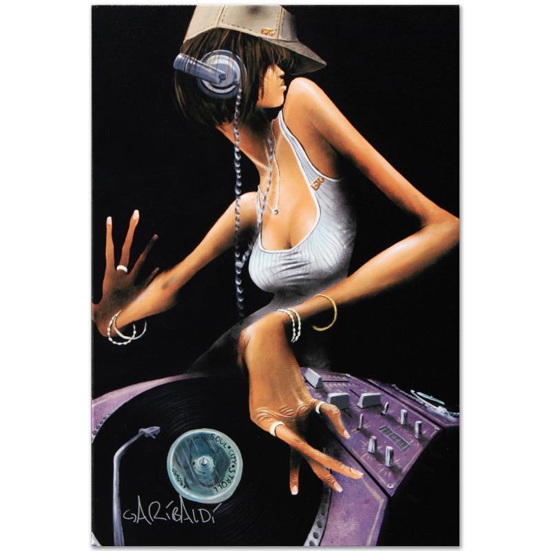 "DJ Free" Limited Edition Giclee on Canvas (24" x 36") by David Garibaldi, E Numbered and Signed. This piece comes Gallery Wrapped.