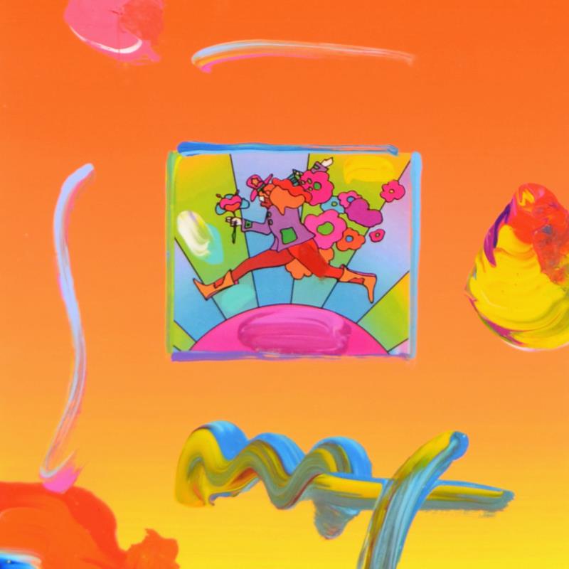 Peter Max - "Flower Jumper" Framed One-Of-A-Kind Acrylic Mixed Media, Hand Signed with Certificate of Authenticity from Peter Max Studios. Retail $3,500.00