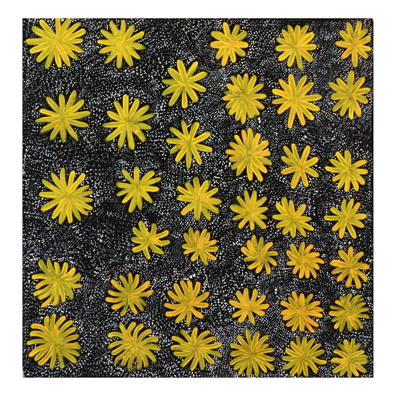 This piece is an original acrylic painting on linen by aboriginal artist, Margaret Turner Petyarre (1945-2008). As is tradition with Aboriginal art, they are not signed, but come with a photograph of the artist holding the painting. Includes Certificate of Authenticity! Measures approx. 24" x 24" (image).