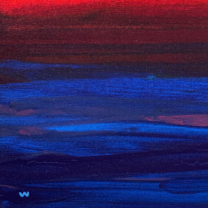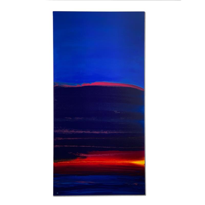 Canvas works are typically framed without plexi so that the vibrancy and interaction with light can be best appreciated.